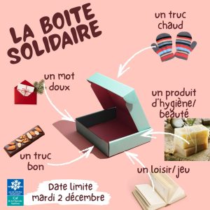 Jeudi 4 décembre, nous avons eu la joie de remettre 40 boîtes remplies de surprises et d’attention aux Restos du coeur.
