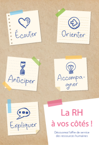 L’offre de service RH, qui répond à une réelle attente des salariés : ainsi, en 2022, ce sont 32 salariés qui ont été reçus en entretien individuels dans le cadre de l’offre de service RH. 6 ateliers collectifs se sont tenus sur des thèmes variés intéressants les salariés (congés/RTT/Compte-épargne temps, télétravail, aménagement du temps de travail, Compte Personnel de Formation, handicap, etc.) Une enquête à destination des salariés a été réalisée fin 2022 afin d’identifier des axes d’amélioration de cette offre pour 2023.